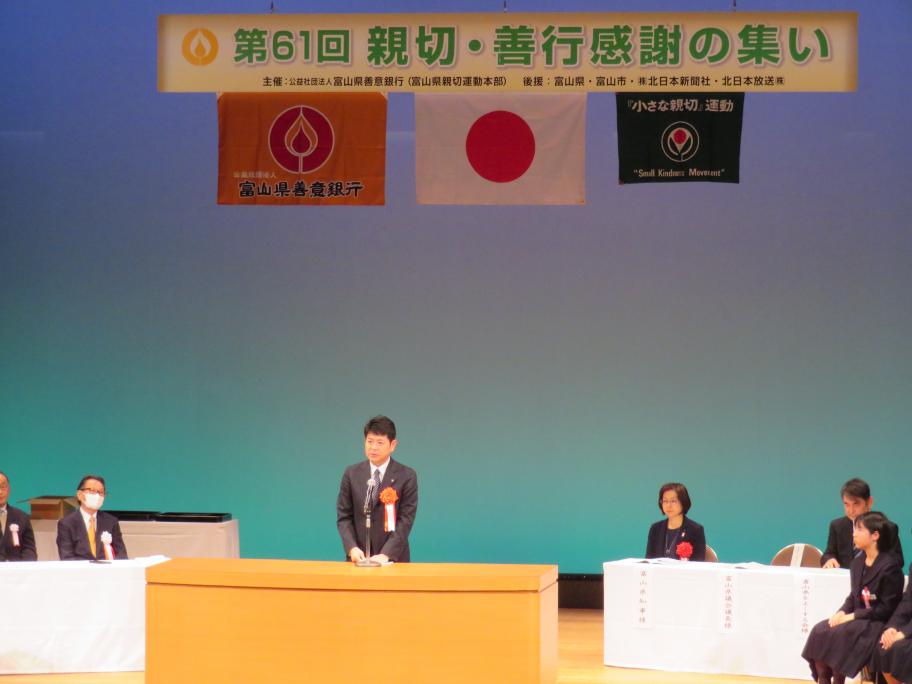 (写真2枚目):富山県民会議会長として挨拶を述べる山本議長