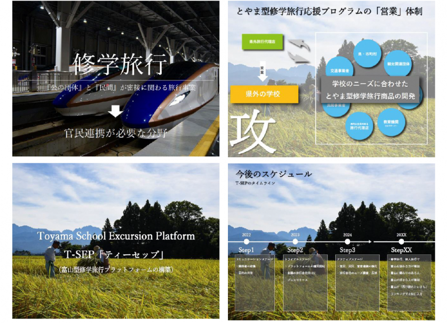 「心の中にある富山」は、コロナ禍における観光業の回復や、長期的な課題である関係人口を増やすために、修学旅行で富山に訪れる人を増やす仕組みを構築するという案でした。