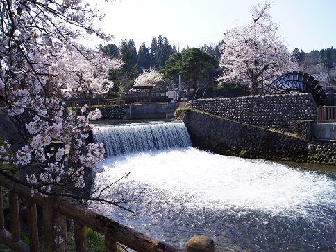 常西用水(じょうさいようすい)プロムナードは、常願寺川(じょうがんじがわ)左岸の用水に沿って整備された散歩道です。4月には、用水沿いに咲く桜のトンネルを見ることができます。
