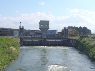 射水市布目沢地先にある取水堰で、射水平野の超湿田地帯を乾田化するのにあわせ、用水不足解消のために整備されました。上流の和田川ダムより農業用水の放流を受け、約1,600haの農地を潤しています。