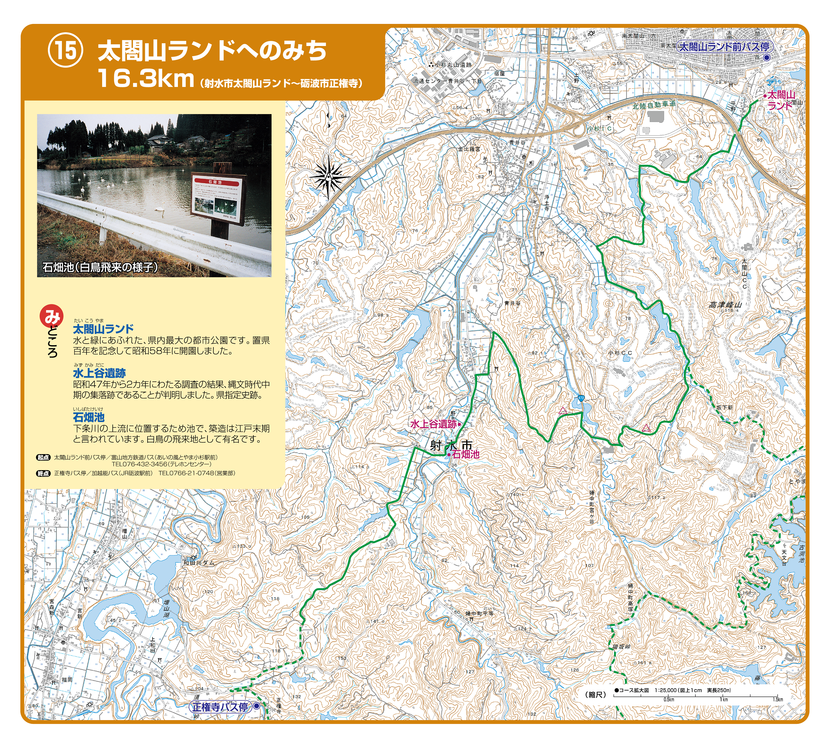 | 太閤山ランドへのみち | 16.3 | 射水市(小杉町)太閤山ランド | 砺波市正権寺 | 太閤山ランド、水上谷遺跡、石畑池 |