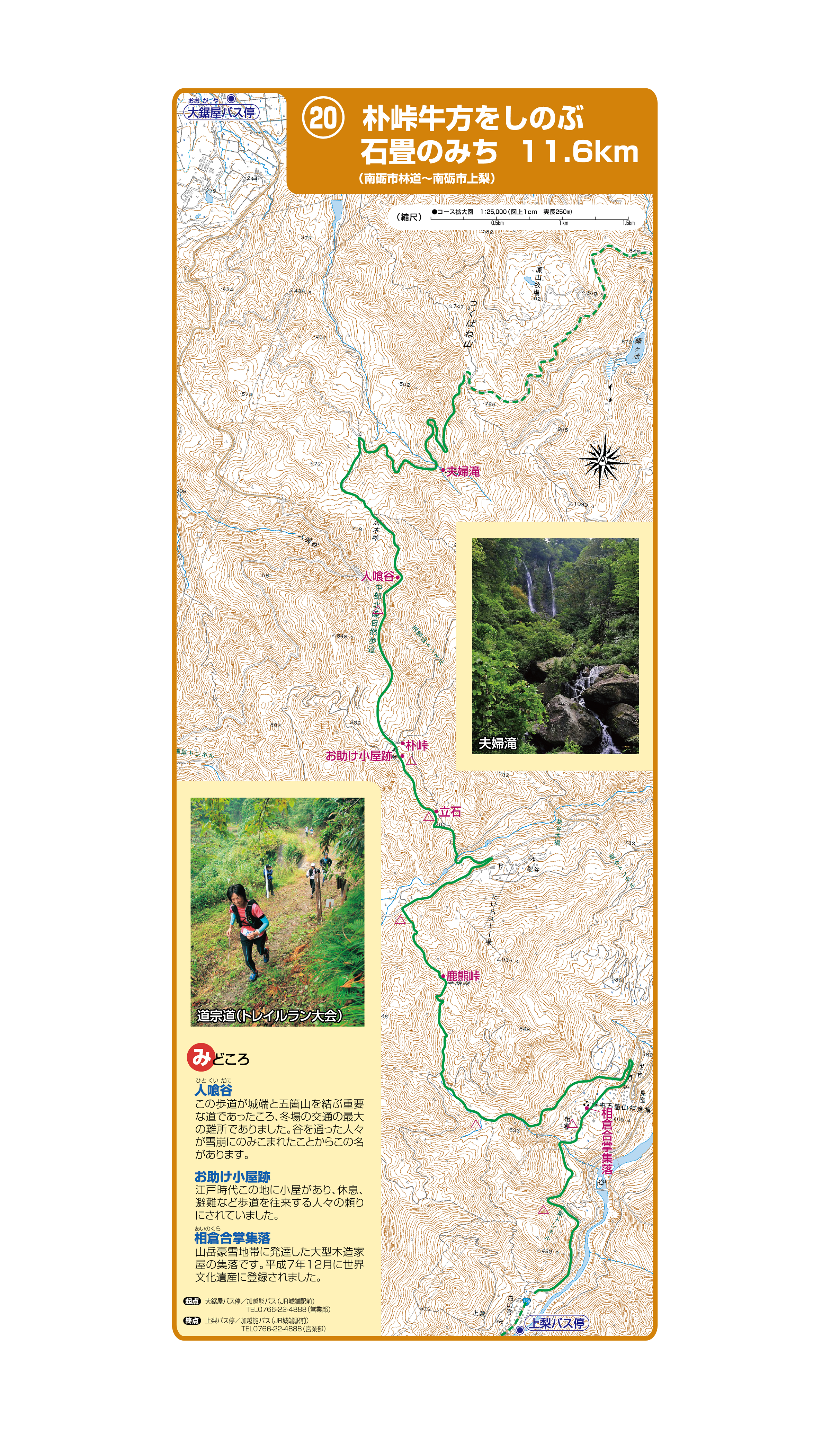 | 朴峠牛方をしのぶ石畳のみち | 11.6 | 南砺市林道 | 南砺市上梨 | 夫婦滝、お助け小屋跡、相倉合掌集落 |