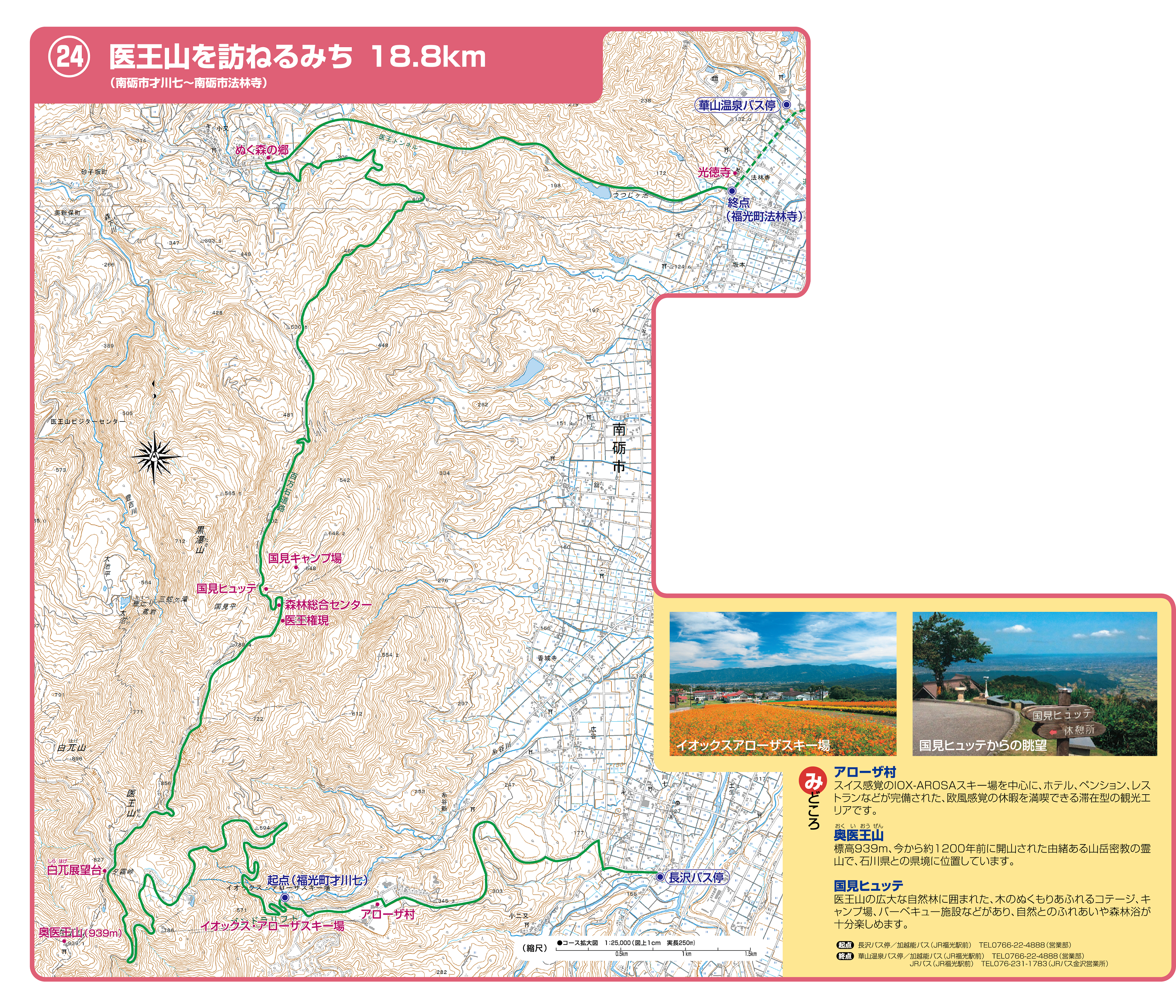 | 医王山を訪ねるみち | 18.8 | 南砺市才川七 | 南砺市法林寺 | アローザ村、奥医王山、国見ヒュッテ |