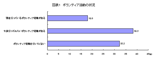 平成12年に行った県政世論調査によると、現在ボランティア活動を行っている人が18.0%、今後行ってみたいとする人が38.3%と、活動意欲のある人が約6割に上っており、県民の関心の高さがうかがえます。