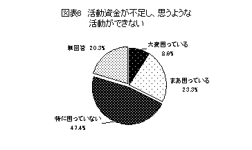 平成12年度県において、県内約1,600の活動団体のうち1,000団体を無作為抽出し、アンケート方式で実態調査を行ったところ、次のような特徴が見られました。