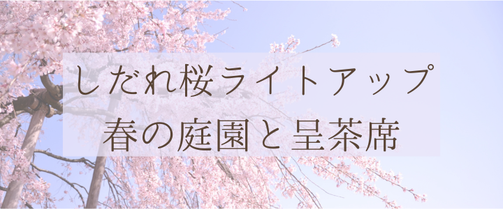 当館では春の2日間、美術館の開館時間を延長し、庭園のしだれ桜のライトアップを行いますのでご案内します。