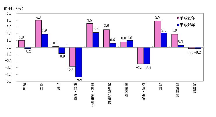 ■ 光熱・水道 当年度指数: 95.6 「他の光熱」、「ガス代」などが下落したため、4.4%の下落となった。 ![]() |