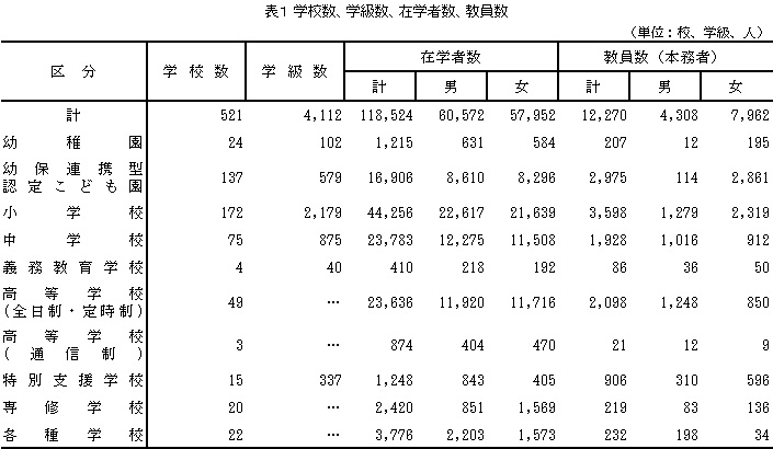 生徒数は 23,636 人(男子 11,920 人、女子 11,716 人)で、前年度より 422 人減少している。