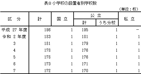 ○ 小学校は 172 校で、前年度より 1 校減少している。