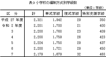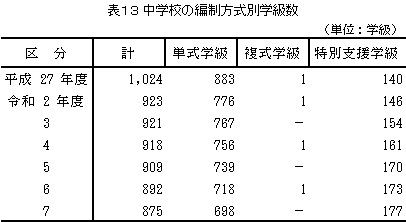 B「特別支援学級」数は 7 学級で、前年度より 2 学級減少している。