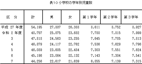 児童数は 44,256 人(男子 22,617 人、女子 21,639 人)で、前年度より 940 人減少している。