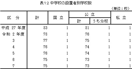 学校数は 3 校(公立の併置校 2 校、私立の併置校 1 校))で、前年度より 1 校増加している。