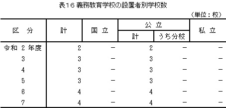 ○ 義務教育学校は 4 校で、前年度と同数である。