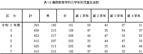 児童生徒数は 410 人(男子 218 人、女子 192 人)で、前年度より 10 人減少している。