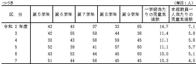 A一学級当たりの児童生徒数は 10.3 人で、前年度より 0.3 人増加している。