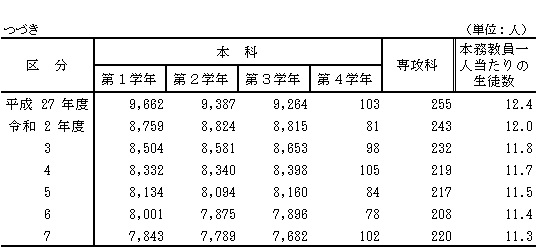 C本務教員一人当たりの生徒数は 11.3 人で、前年度より 0.1 人減少している。