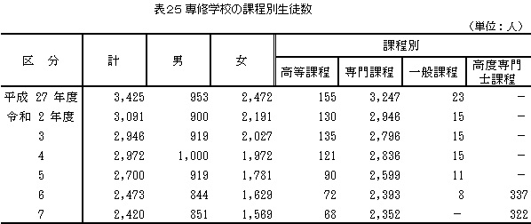 ○ 専修学校は 2,420 人で、前年度より 53 人減少している。