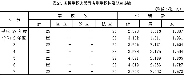 ○ 各種学校は 3,776 人で、前年度より 237 人減少している。