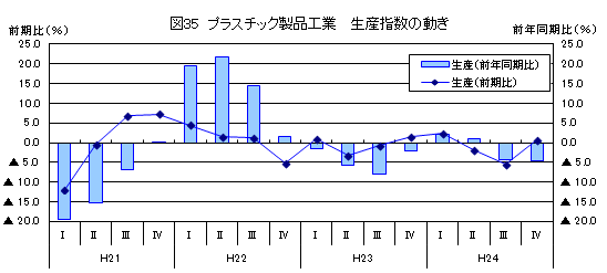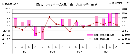 (1)鉄鋼業 @ 概 況 生産指数は前年比▲10.3%(寄与度▲0.40)低下の95.7となり、3年ぶりに低下した。これは、3品目すべて(素製品(鋼半製品含)、熱間圧延鋼材、鋳鍛鋼品類)が減少したことによる(表1、統計表第1表)。 在庫指数は前年末比26.4%(寄与度1.43)上昇の110.2となり、2年ぶりに上昇した。これは3品目中、1品目(鋳鍛鋼品類)が減少したものの、2品目(素製品(鋼半製品含)、熱間圧延鋼材)が増加したことによる(表1、統計表第9表)。 A 生 産 四半期別生産指数の前期比(季節調整済指数)は、T期2.6%と上昇したが、U期▲2.3%、V期▲9.7%、W期▲8.1%と3期連続で低下した。 また、前年同期比(原指数)は、T期▲3.4%、U期▲5.6%、V期▲15.1%、W期▲17.5%と4期連続で前年を下回った(図3、統計表第3表)。 B 在 庫 四半期別在庫指数の前期末比(季節調整済指数)は、T期22.3%、U期4.0%、V期1.6%と3期連続で上昇したが、W期▲1.5%と低下した。 また、前年同期末比(原指数)は、T期0.4%、U期6.5%、V期14.1%、W期26.4%と4期連続で前年を上回った(図4、統計表第4表)。 (2)非鉄金属工業 @ 概 況 生産指数は前年比0.4%(寄与度0.03)上昇の101.8となり、3年連続で上昇した。これは7品目中、4品目(アルミニウム二次精錬、伸銅製品、アルミニウム圧延製品、電線ケーブル)が減少したものの、3品目(非鉄金属地金、非鉄金属鋳物、その他非鉄金属製品)が増加したことによる(表2、統計表第1表)。 在庫指数は前年末比▲23.5%(寄与度▲1.51)低下の102.1となり、3年ぶりに低下した。これは6品目中、2品目(アルミニウム二次精錬、伸銅製品)が増加したものの、4品目(非鉄金属地金、アルミニウム圧延製品、電線ケーブル、その他非鉄金属製品)が減少したことによる(表2、統計表第9表)。 A 生 産 四半期別生産指数の前期比(季節調整済指数)は、T期▲0.2%、U期▲3.6%、V期▲1.7%、W期▲3.1%と4期連続で低下した。 また、前年同期比(原指数)は、T期4.6%、U期5.5%と平成23年V期以降4期連続で前年を上回ったが、V期▲0.7%、W期▲6.8%と2期連続で前年を下回った(図7、統計表第3表)。 B 在 庫 四半期別在庫指数の前期末比(季節調整済指数)は、T期▲6.8%、U期▲20.0%、V期▲3.6%と3期連続で低下したが、W期5.8%と上昇した。 また、前年同期末比(原指数)は、T期5.3%と平成22年V期以降7期連続で前年を上回ったが、U期▲24.0%、V期▲26.3%、W期▲23.5%と3期連続で前年を下回った(図8、統計表第4表)。 (3)金属製品工業 @ 概 況 生産指数は前年比0.2%(寄与度0.02)上昇の101.9となり、3年連続で上昇した。これは6品目中、2品目(金属製建具、その他金属製品)が減少したものの、4品目(鉄構物、軽金属板製品、管継手、ばね)が増加したことによる(表3、統計表第1表)。 在庫指数は前年末比3.7%(寄与度0.13)上昇の67.3となり、2年ぶりに上昇した。これは4品目中、3品目(軽金属板製品、ばね、その他金属製品)が減少したものの、1品目(金属製建具)が増加したことによる(表3、統計表第9表)。 A 生 産 四半期別生産指数の前期比(季節調整済指数)は、T期1.2%と上昇し、U期▲3.2%、V期▲2.1%と低下したが、W期1.6%と再び上昇した。 また、前年同期比(原指数)は、T期4.4%、U期1.3%と平成22年T期以降10期連続で前年を上回ったが、V期▲4.3%、W期▲0.6%と前年を下回った(図11、統計表第3表)。 B 在 庫 四半期別在庫指数の前期末比(季節調整済指数)は、T期7.7%、U期1.3%と平成23年V期以降4期連続で上昇したが、V期▲3.3%、W期▲1.5%と低下した。 また、前年同期末比(原指数)は、T期3.1%、U期12.4%、V期7.9%、W期3.7%と4期連続で前年を上回った(図12、統計表第4表)。 (4)はん用・生産用・業務用機械工業 @ 概 況 生産指数は前年比▲22.2%(寄与度▲3.70)低下の99.1となり、3年ぶりに低下した。これは8品目中1品目(金型)が増加したものの、7品目(油圧機器、軸受、ロボット・産業機械、金属工作機械、機械工具、その他一般機械・部品、業務用機械)が減少したことによる(表4、統計表第1表)。 在庫指数は前年末比▲23.3%(寄与度▲4.69)低下の121.9となり、3年ぶりに低下した。これは5品目中、1品目(金属工作機械)が増加したものの、4品目(軸受、機械工具、その他一般機械・部品、業務用機械)が減少したことによる(表4、統計表第9表)。 A 生 産 四半期別生産指数の前期比(季節調整済指数)は、T期▲3.6%、U期▲4.8%、V期▲0.4%、W期▲5.6%と平成23年V期以降6期連続で低下した。 また、前年同期比(原指数)は、T期▲20.6%、U期▲29.7%、V期▲21.6%、W期▲15.2%と平成23年W期以降5期連続で前年を下回った(図15、統計表第3表)。 B 在 庫 四半期別在庫指数の前期末比(季節調整済指数)は、T期▲2.3%、U期▲3.2%、V期▲7.4%、W期▲12.0%と4期連続で低下した。 また、前年同期末比(原指数)は、T期42.4%、U期16.6%と平成22年U期以降9期連続で前年を上回ったが、V期▲0.4%、W期▲23.3%と前年を下回った(図16、統計表第4表)。 (5)電気機械工業 @ 概 況 生産指数は前年比▲16.6%(寄与度▲3.03)低下の69.6となり、2年連続で低下した。これは6品目中、2品目(回転・静止電気機器、電子部品)が増加したものの、4品目(その他電気機械、半導体、集積回路、抵抗器)が減少したことに