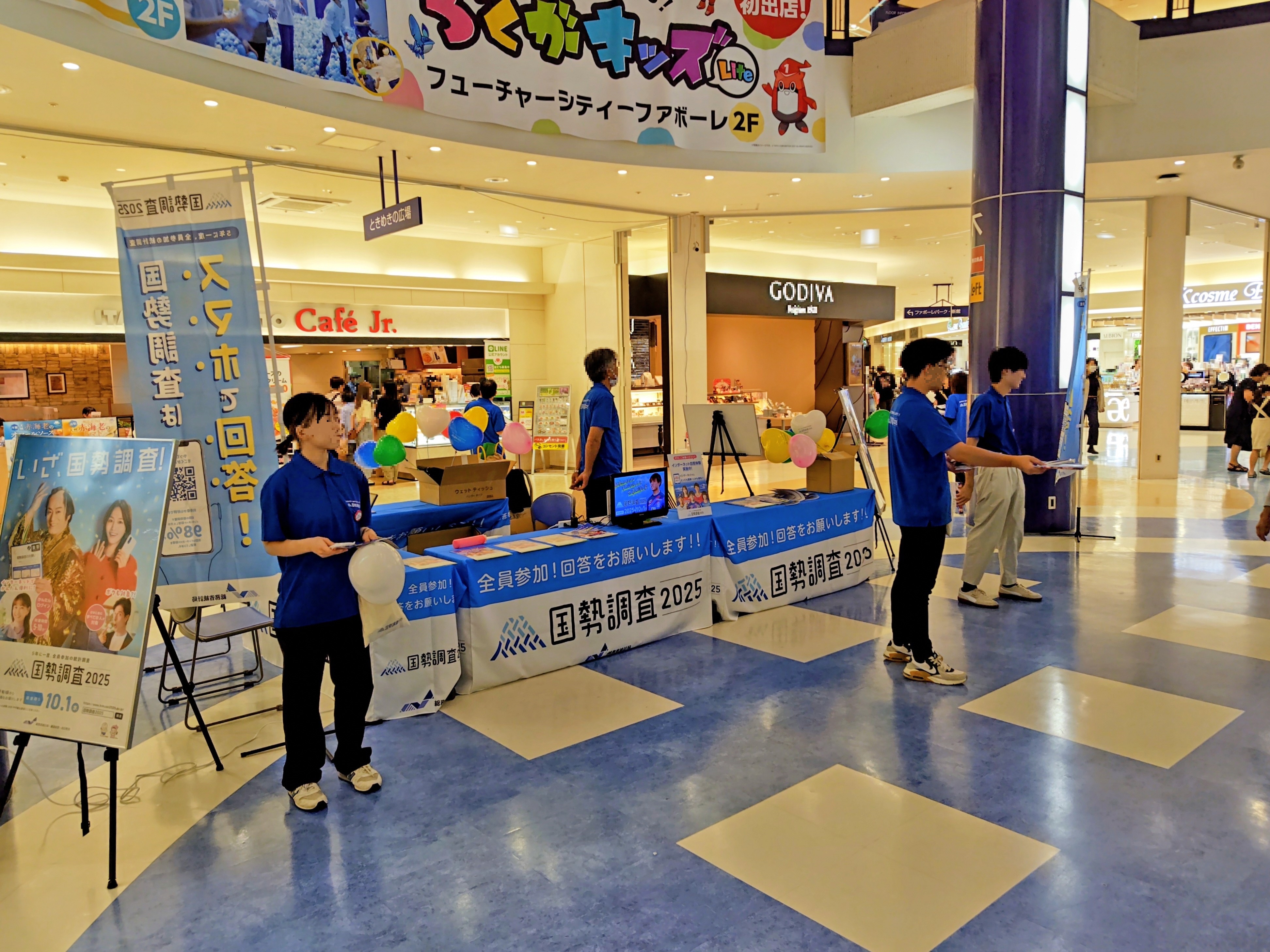 令和7年9月20日(土)にイオンモール高岡1階セントラルコートにて、9月23日(火・祝)にファボーレ1階ときめきの広場にて、令和7年国勢調査周知イベントを開催しました。県の担当者が啓発グッズやチラシを来館者に配布し、調査への理解と回答を呼びかけました。