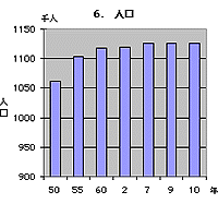 | 都道府県名 | 順 位 | 総人口 人 (平成10年) | 都道府県名 | 順 位 | 総人口 人 (平成10年) | | 東京 | 1 | 11,829,931 | 山口 | 25 | 1,542,668 | | 大阪 | 2 | 8,804,432 | 長崎 | 26 | 1,529,589 | | 神奈川 | 3 | 8,391,812 | 愛媛 | 27 | 1,501,613 | | 愛知 | 4 | 6,974,481 | 青森 | 28 | 1,478,139 | | 埼玉 | 5 | 6,893,833 | 奈良 | 29 | 1,446,795 | | 千葉 | 6 | 5,887,113 | 岩手 | 30 | 1,416,492 | | 北海道 | 7 | 5,699,995 | 滋賀 | 31 | 1,323,445 | | 兵庫 | 8 | 5,460,516 | 沖縄 | 32 | 1,301,079 | | 福岡 | 9 | 4,988,306 | 山形 | 33 | 1,253,416 | | 静岡 | 10 | 3,769,784 | 大分 | 34 | 1,227,561 | | 茨城 | 11 | 2,995,691 | 秋田 | 35 | 1,201,072 | | 広島 | 12 | 2,884,178 | 石川 | 36 | 1,185,348 | | 京都 | 13 | 2,633,553 | 宮崎 | 37 | 1,175,797 | | 新潟 | 14 | 2,493,747 | 富山 | 38 | 1,126,406 | | 宮城 | 15 | 2,355,321 | 和歌山 | 39 | 1,075,988 | | 長野 | 16 | 2,219,884 | 香川 | 40 | 1,028,905 | | 福島 | 17 | 2,136,618 | 山梨 | 41 | 892,374 | | 岐阜 | 18 | 2,115,277 | 佐賀 | 42 | 884,486 | | 群馬 | 19 | 2,024,818 | 徳島 | 43 | 830,988 | | 栃木 | 20 | 2,007,582 | 福井 | 44 | 830,329 | | 岡山 | 21 | 1,957,880 | 高知 | 45 | 811,987 | | 熊本 | 22 | 1,864,638 | 島根 | 46 | 765,866 | | 三重 | 23 | 1,861,102 | 鳥取 | 47 | 614,766 | | 鹿児島 | 24 | 1,790,829 | 全国計 | | 126,486,430 |