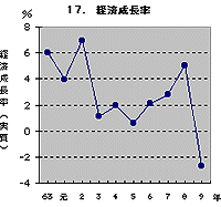 | 都道府県名 | 順 位 | 経済成長率(実質) % (平成9年度) | 都道府県名 | 順 位 | 経済成長率(実質) % (平成9年度) | | 大分 | 1 | 1.9 | 福島 | 23 | -1.8 | | 福井 | 2 | 0.4 | 静岡 | 25 | -1.9 | | 鹿児島 | 3 | -0.1 | 岐阜 | 26 | -2.2 | | 茨城 | 4 | -0.2 | 山口 | 26 | -2.2 | | 宮崎 | 4 | -0.2 | 栃木 | 28 | -2.3 | | 埼玉 | 6 | -0.3 | 奈良 | 28 | -2.3 | | 群馬 | 7 | -0.4 | 広島 | 28 | -2.3 | | 東京 | 7 | -0.4 | 新潟 | 31 | -2.4 | | 福岡 | 7 | -0.4 | 千葉 | 32 | -2.5 | | 全国平均 | | -0.4 | 石川 | 32 | -2.5 | | 長野 | 10 | -0.6 | 高知 | 34 | -2.6 | | 三重 | 10 | -0.6 | 富山 | 35 | -2.7 | | 香川 | 10 | -0.6 | 佐賀 | 36 | -2.8 | | 沖縄 | 10 | -0.6 | 滋賀 | 37 | -3.1 | | 熊本 | 14 | -0.7 | 鳥取 | 37 | -3.1 | | 岩手 | 15 | -0.8 | 兵庫 | 39 | -3.3 | | 徳島 | 15 | -0.8 | 秋田 | 40 | -3.4 | | 島根 | 17 | -0.9 | 長崎 | 40 | -3.4 | | 和歌山 | 18 | -1.0 | 岡山 | 42 | -3.5 | | 宮城 | 19 | -1.1 | 神奈川 | 43 | -3.7 | | 山形 | 19 | -1.1 | 京都 | 43 | -3.7 | | 大阪 | 21 | -1.4 | 青森 | 45 | -4.0 | | 山梨 | 22 | -1.5 | 愛知 | 46 | -4.4 | | 北海道 | 23 | -1.8 | 愛媛 | 47 | -5.1 |
