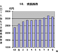 | 都道府県名 | 順 位 | 人口1人当たり 分配県民所得 千円 (平成9年度) | 都道府県名 | 順 位 | 人口1人当たり 分配県民所得 千円 (平成9年度) | | 東京 | 1 | 4,339 | 香川 | 24 | 2,939 | | 愛知 | 2 | 3,671 | 岡山 | 25 | 2,895 | | 神奈川 | 3 | 3,446 | 福岡 | 26 | 2,876 | | 滋賀 | 4 | 3,429 | 福島 | 27 | 2,875 | | 埼玉 | 5 | 3,424 | 宮城 | 28 | 2,861 | | 大阪 | 6 | 3,400 | 北海道 | 29 | 2,809 | | 千葉 | 7 | 3,369 | 徳島 | 30 | 2,793 | | 栃木 | 8 | 3,250 | 奈良 | 31 | 2,728 | | 兵庫 | 9 | 3,148 | 山形 | 32 | 2,708 | | 茨城 | 10 | 3,139 | 大分 | 32 | 2,708 | | 群馬 | 10 | 3,139 | 鳥取 | 34 | 2,645 | | 静岡 | 12 | 3,125 | 岩手 | 35 | 2,642 | | 富山 | 13 | 3,119 | 熊本 | 36 | 2,634 | | 京都 | 14 | 3,109 | 和歌山 | 37 | 2,621 | | 広島 | 15 | 3,096 | 秋田 | 38 | 2,617 | | 全国平均 | | 3,096 | 佐賀 | 39 | 2,605 | | 長野 | 16 | 3,067 | 島根 | 40 | 2,581 | | 石川 | 17 | 3,029 | 愛媛 | 41 | 2,552 | | 福井 | 18 | 3,021 | 青森 | 42 | 2,498 | | 岐阜 | 19 | 3,004 | 長崎 | 43 | 2,474 | | 新潟 | 20 | 3,003 | 宮崎 | 44 | 2,386 | | 山梨 | 21 | 2,988 | 高知 | 45 | 2,376 | | 山口 | 22 | 2,956 | 鹿児島 | 46 | 2,339 | | 三重 | 23 | 2,944 | 沖縄 | 47 | 2,158 |
