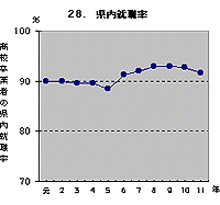 富山県内高校卒業者の都道府県別就職先の割合 %