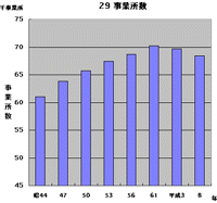 | 都道府県名 | 順 位 | 事業所数 事業所 (平成8年) | 都道府県名 | 順 位 | 事業所数 事業所 % (平成8年) | | 東京 | 1 | 771,656 | 愛媛 | 25 | 84,704 | | 大阪 | 2 | 533,565 | 山口 | 26 | 83,194 | | 愛知 | 3 | 381,542 | 長崎 | 27 | 80,040 | | 神奈川 | 4 | 326,566 | 石川 | 28 | 78,219 | | 北海道 | 5 | 287,173 | 青森 | 29 | 77,153 | | 埼玉 | 6 | 277,180 | 沖縄 | 30 | 75,688 | | 兵庫 | 7 | 264,826 | 岩手 | 31 | 74,546 | | 福岡 | 8 | 253,276 | 山形 | 32 | 73,602 | | 静岡 | 9 | 218,056 | 秋田 | 33 | 70,005 | | 千葉 | 10 | 214,707 | 富山 | 34 | 68,383 | | 広島 | 11 | 156,096 | 大分 | 35 | 66,703 | | 京都 | 12 | 155,616 | 宮崎 | 36 | 64,002 | | 新潟 | 13 | 150,370 | 滋賀 | 37 | 63,941 | | 茨城 | 14 | 141,768 | 和歌山 | 38 | 63,228 | | 長野 | 15 | 133,597 | 香川 | 39 | 61,183 | | 岐阜 | 16 | 129,444 | 福井 | 40 | 56,059 | | 宮城 | 17 | 119,273 | 山梨 | 41 | 55,863 | | 群馬 | 18 | 115,808 | 奈良 | 42 | 54,753 | | 福島 | 19 | 114,728 | 高知 | 43 | 49,034 | | 栃木 | 20 | 109,892 | 徳島 | 44 | 48,786 | | 岡山 | 21 | 99,954 | 島根 | 45 | 47,399 | | 三重 | 22 | 98,650 | 佐賀 | 46 | 46,041 | | 鹿児島 | 23 | 95,466 | 鳥取 | 47 | 33,847 | | 熊本 | 24 | 91,443 | 全国計 | | 6,717,025 |