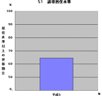 | 都道府県名 | 順 位 | 誘導居住水準以上の 世帯割合 % (平成5年) | 都道府県名 | 順 位 | 誘導居住水準以上の 世帯割合 % (平成5年) | | 富山 | 1 | 64.5 | 愛媛 | 25 | 45.6 | | 秋田 | 2 | 63.9 | 宮城 | 26 | 45.4 | | 石川 | 3 | 59.2 | 愛知 | 27 | 44.8 | | 青森 | 4 | 57.7 | 佐賀 | 28 | 43.7 | | 新潟 | 5 | 57.3 | 静岡 | 29 | 41.8 | | 長野 | 6 | 55.8 | 群馬 | 30 | 41.7 | | 岩手 | 7 | 55.6 | 栃木 | 31 | 41.2 | | 岐阜 | 8 | 55.0 | 茨城 | 32 | 40.7 | | 滋賀 | 9 | 54.7 | 兵庫 | 32 | 40.7 | | 福井 | 10 | 54.6 | 和歌山 | 32 | 40.7 | | 山形 | 11 | 54.3 | 全国平均 | | 40.5 | | 北海道 | 12 | 53.7 | 高知 | 35 | 40.0 | | 三重 | 13 | 52.3 | 鹿児島 | 36 | 39.9 | | 香川 | 14 | 50.8 | 熊本 | 37 | 39.7 | | 島根 | 15 | 49.2 | 福岡 | 38 | 39.2 | | 鳥取 | 16 | 49.0 | 宮崎 | 39 | 38.5 | | 福島 | 17 | 47.4 | 長崎 | 40 | 38.0 | | 徳島 | 18 | 47.3 | 千葉 | 41 | 36.9 | | 大分 | 19 | 47.1 | 京都 | 42 | 35.2 | | 奈良 | 20 | 46.8 | 埼玉 | 43 | 32.8 | | 山口 | 21 | 46.6 | 神奈川 | 44 | 31.3 | | 山梨 | 22 | 46.5 | 沖縄 | 45 | 30.4 | | 広島 | 23 | 46.3 | 大阪 | 46 | 30.1 | | 岡山 | 24 | 46.2 | 東京 | 47 | 25.8 |